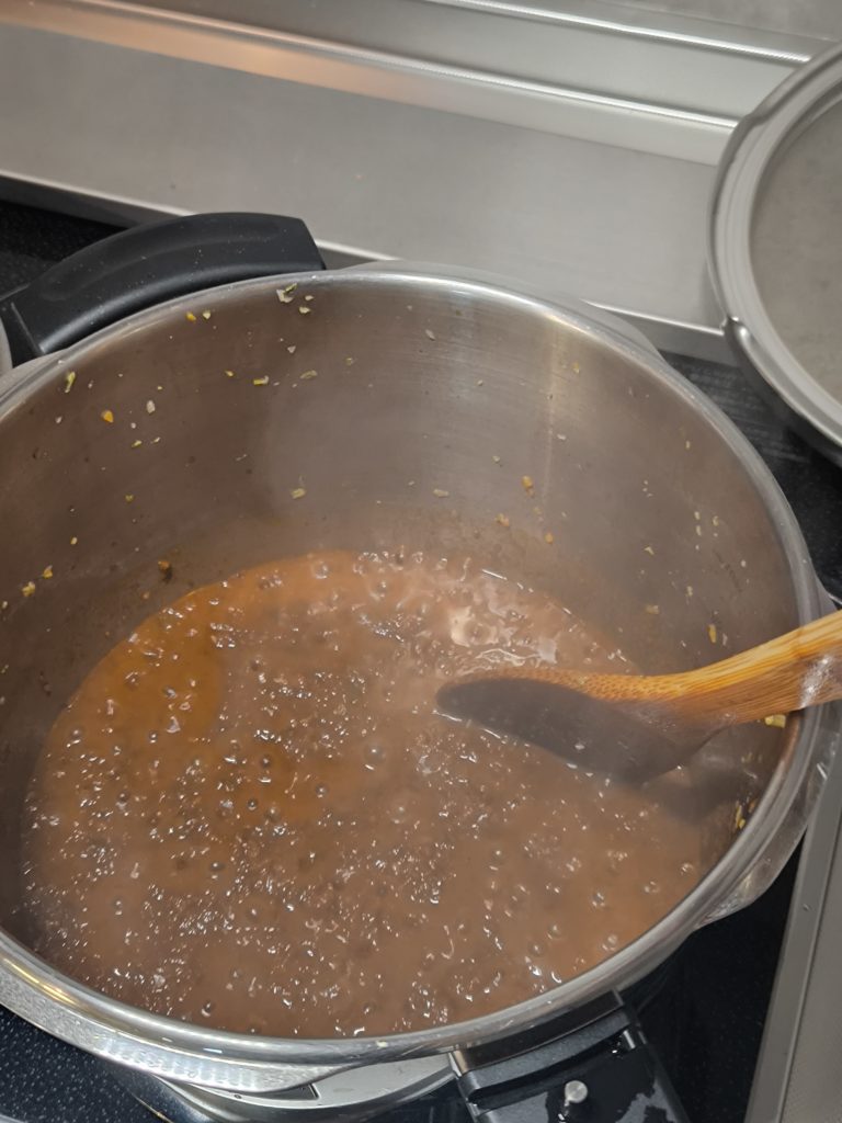 味見して甘味が足りなかったので、牛乳または生クリームを追加。砂糖は最終手段ですが、今回は牛乳でベストな甘みに仕上がりました。
