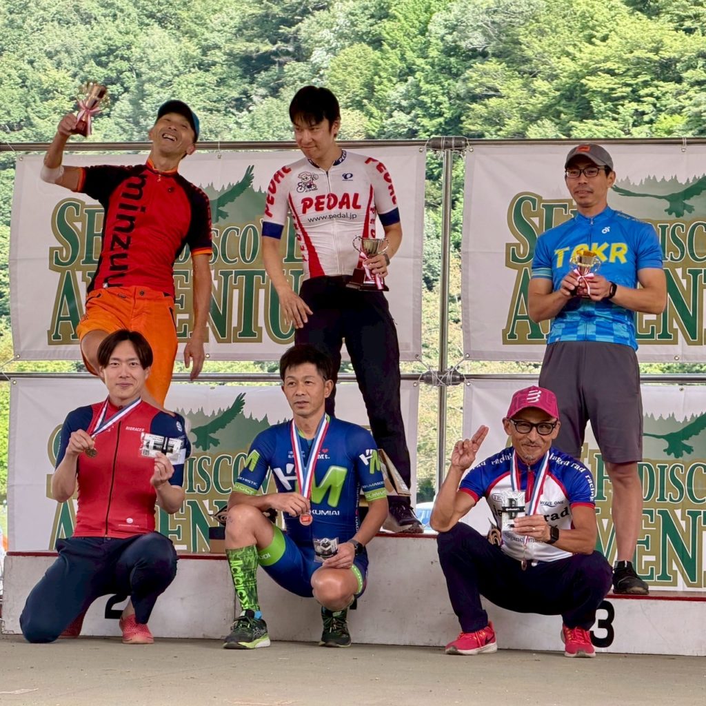 握力が何度も限界を迎えそうになり、腰も限界寸前・・・ゴールが見えた時には心底安堵しました。この時点でおそらくMTBでは6位だろうなと思ってましたが、ケガもトラブルもなく完走出来たことに嬉しくなり、片手で小さく、力のないガッツポーズをしてゴールアーチを通過しました。
