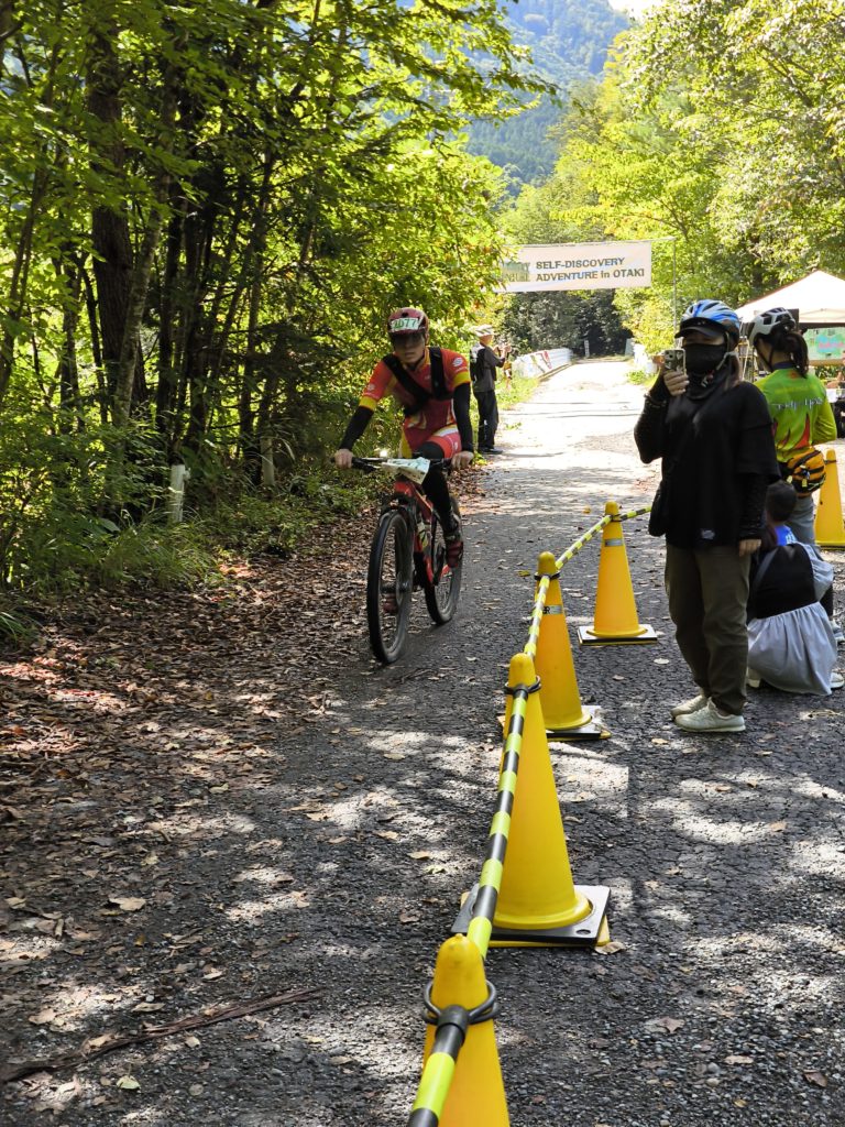 荷物チェックに対応してる間に、ゴールされたSさんの撮影は間に合わずでした・・・やっとレースデビューのダウンカントリーバイクはさすがに速い!得意のヒルクライム区間でも相当タイムを稼いだ模様。