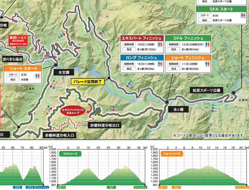 今回、お客様と共に出場したのはミドルコース(当初51kmの予定が約44kmに短縮)です。