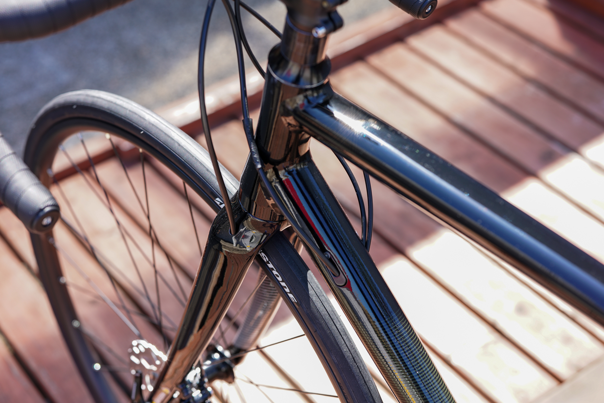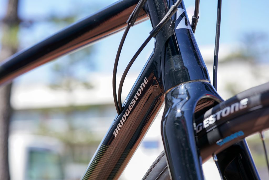 ワイヤー類もスマートに内装し、リムブレーキモデルとは異なるフレーム設計に。見た目の印象が大きく変わります。
