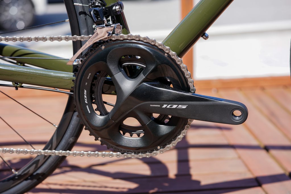 ブレーキからクランク、BBまで、しっかりと「SHIMANO 105」で統一。