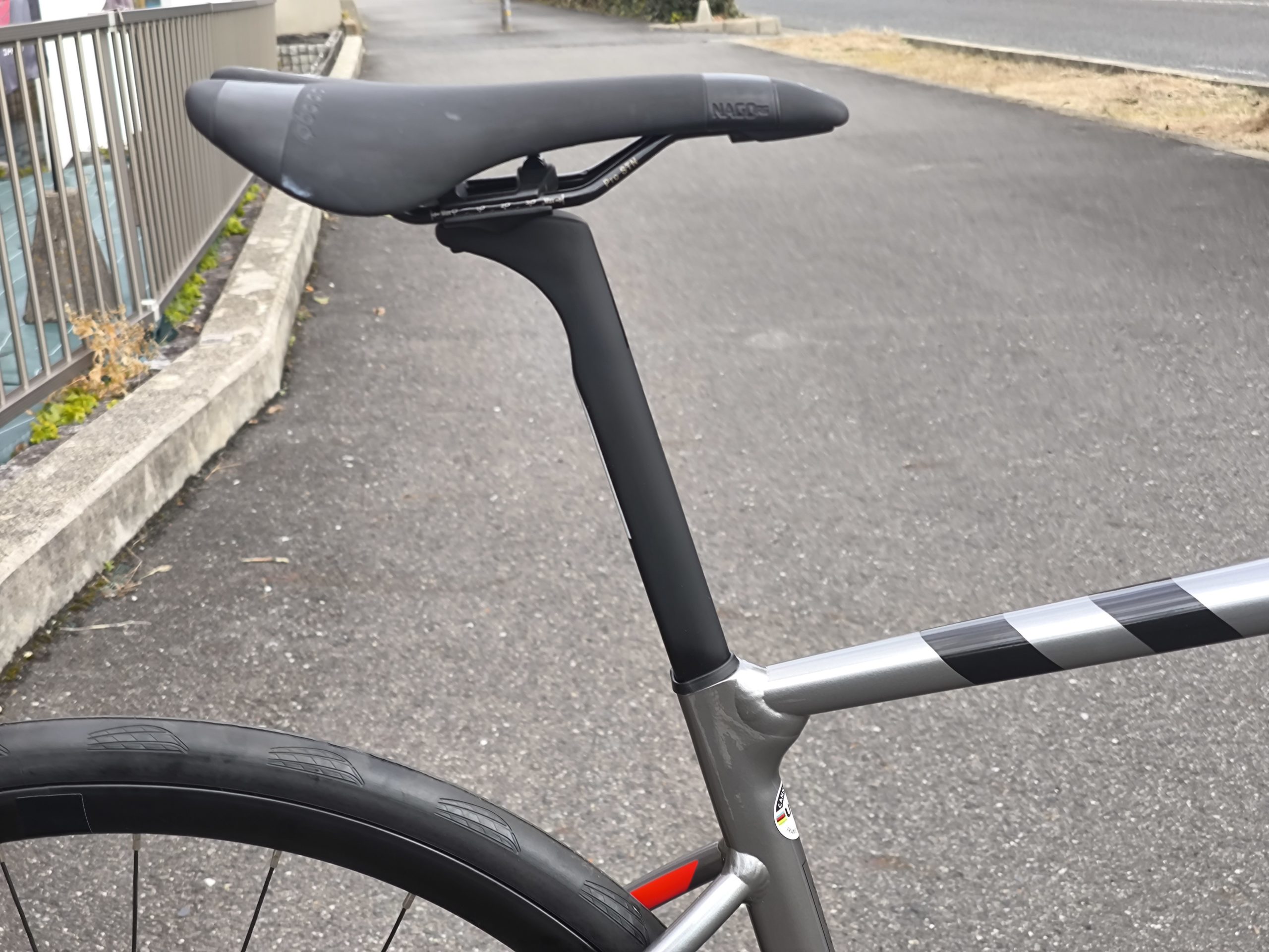 通常の105完成車ではシートポストがアルミ製ですが、約100gも軽量なカーボン製のHollowGram 27 SL Carbonシートポストを装備。軽いだけでなく快適性も向上しますので、見た目以上に満足度の高いカスタムです。