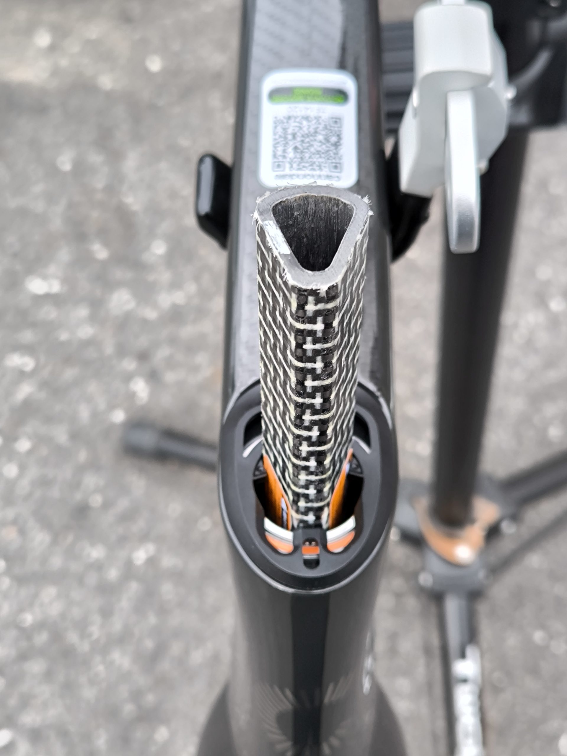 フォークはノーカットで378gと、カタログ値ジャストでした。コラムカット後にはさらに数十グラム軽量になります。