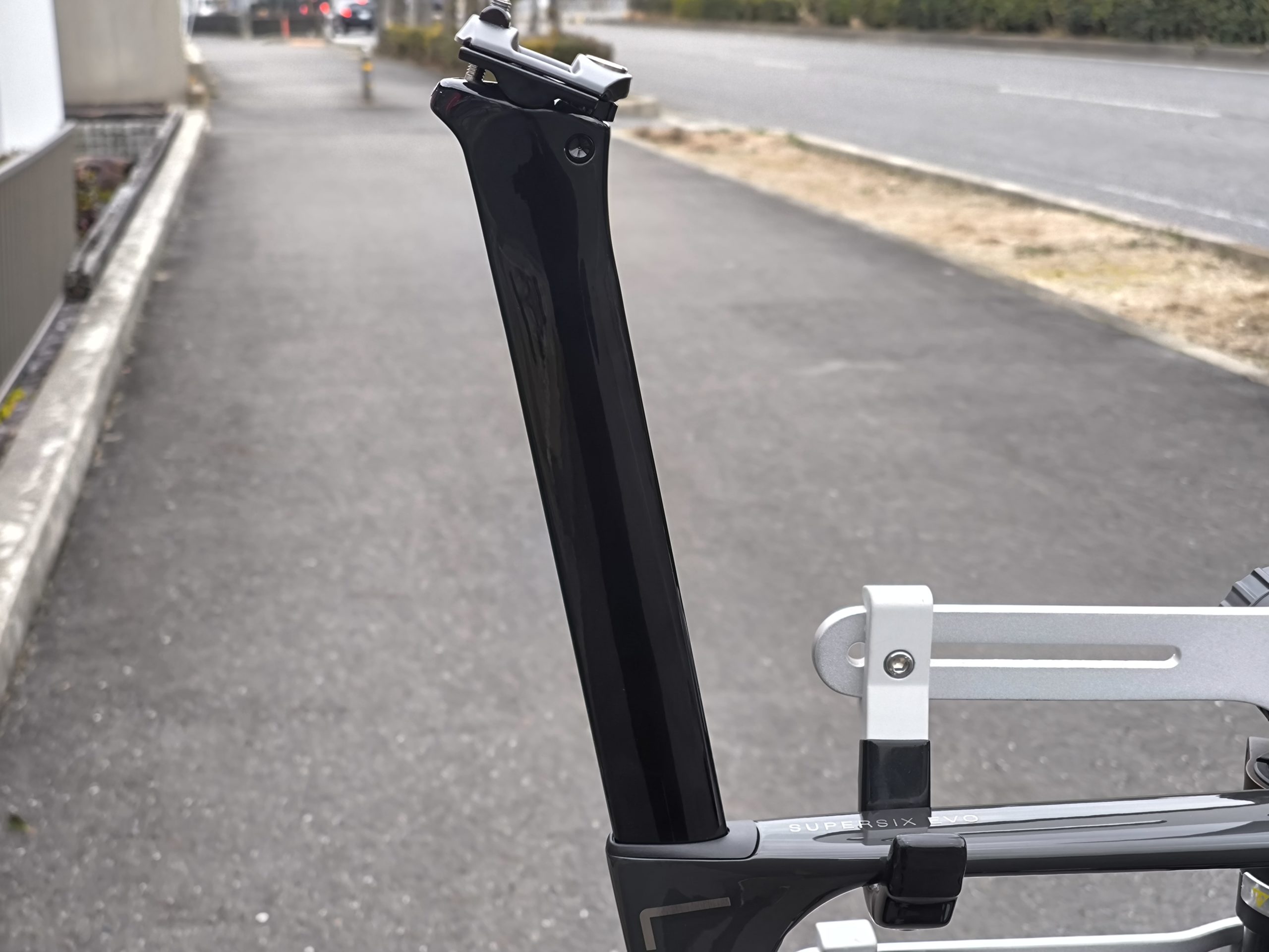 上記のしなり増加により、快適性のために設けてあったシートポストの切り欠きが不要となりシンプルな形状になったため、軽量化と空気抵抗の削減に寄与しています。