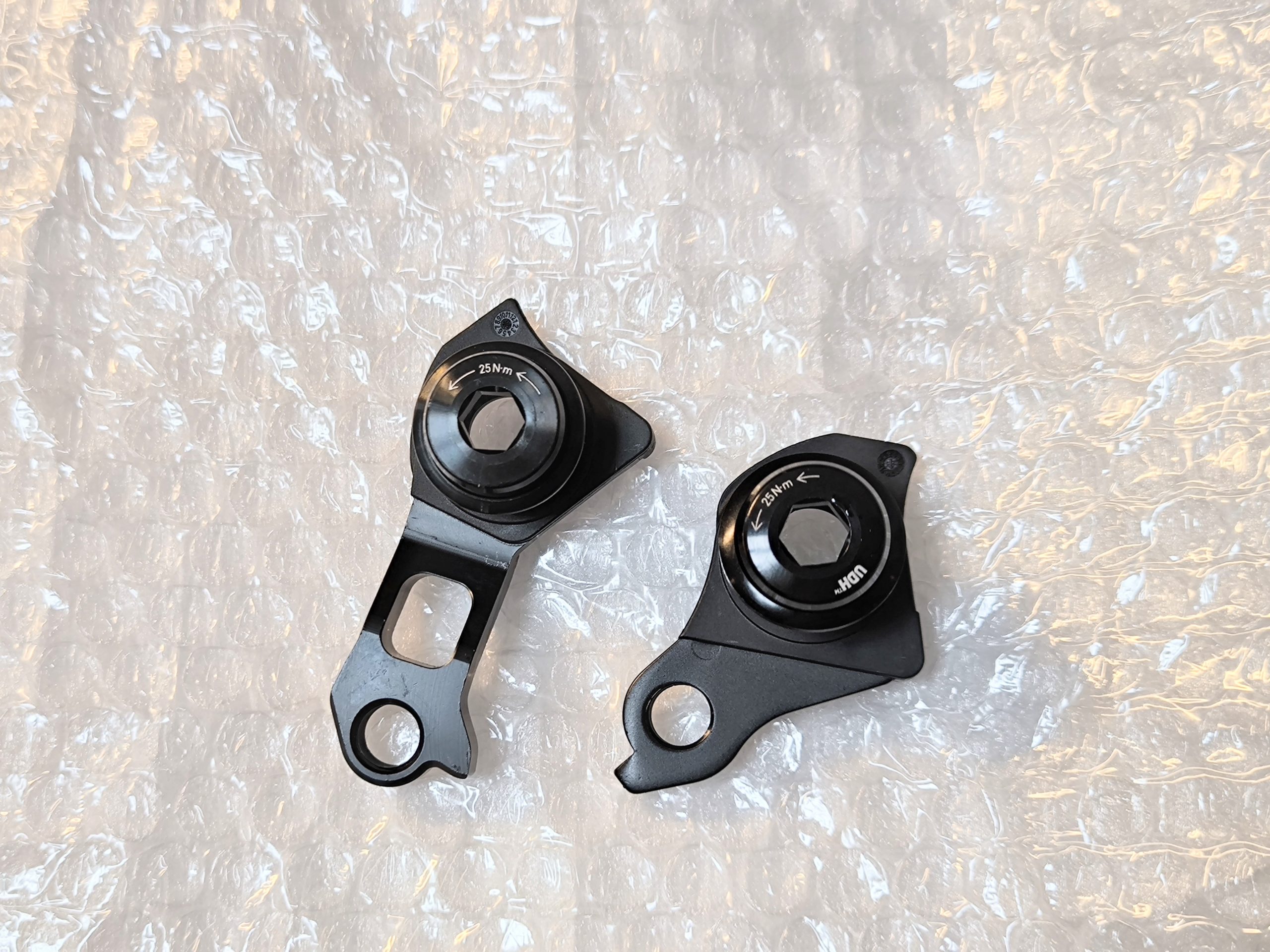 UDHのダイレクトマウントハンガー、ノーマルハンガーの2種が付属。ダイレクトマウントにはパーツ点数の削減による軽量化と変速性能向上、ホイール着脱の容易化といった多くのメリットがあるため、シマノユーザーには朗報ですね。