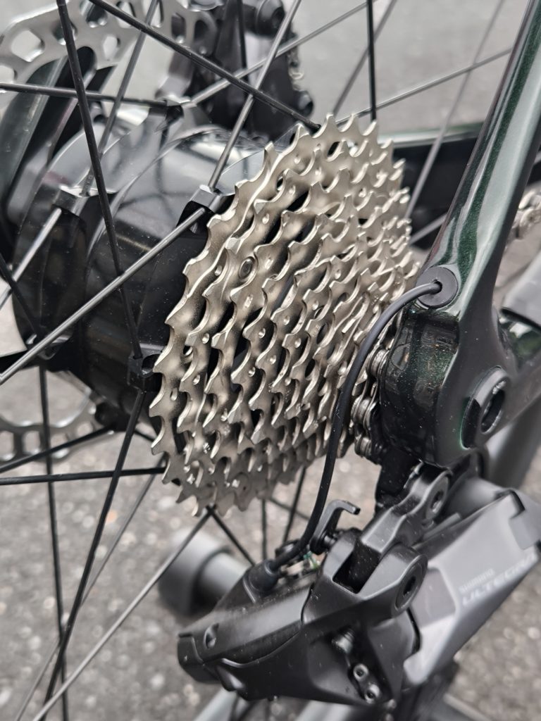 50Nmのほぼ無音で摩擦のないアシストを実現し、スマートながら厳しい坂道でも十分なパワーを発揮します。アシストモードによっては150km、獲得標高4000mのライドを完走できるそうです。重量も11kg台に収まり、アシストが切れた後でもちゃんと走る重量と乗り心地に仕上げられています。