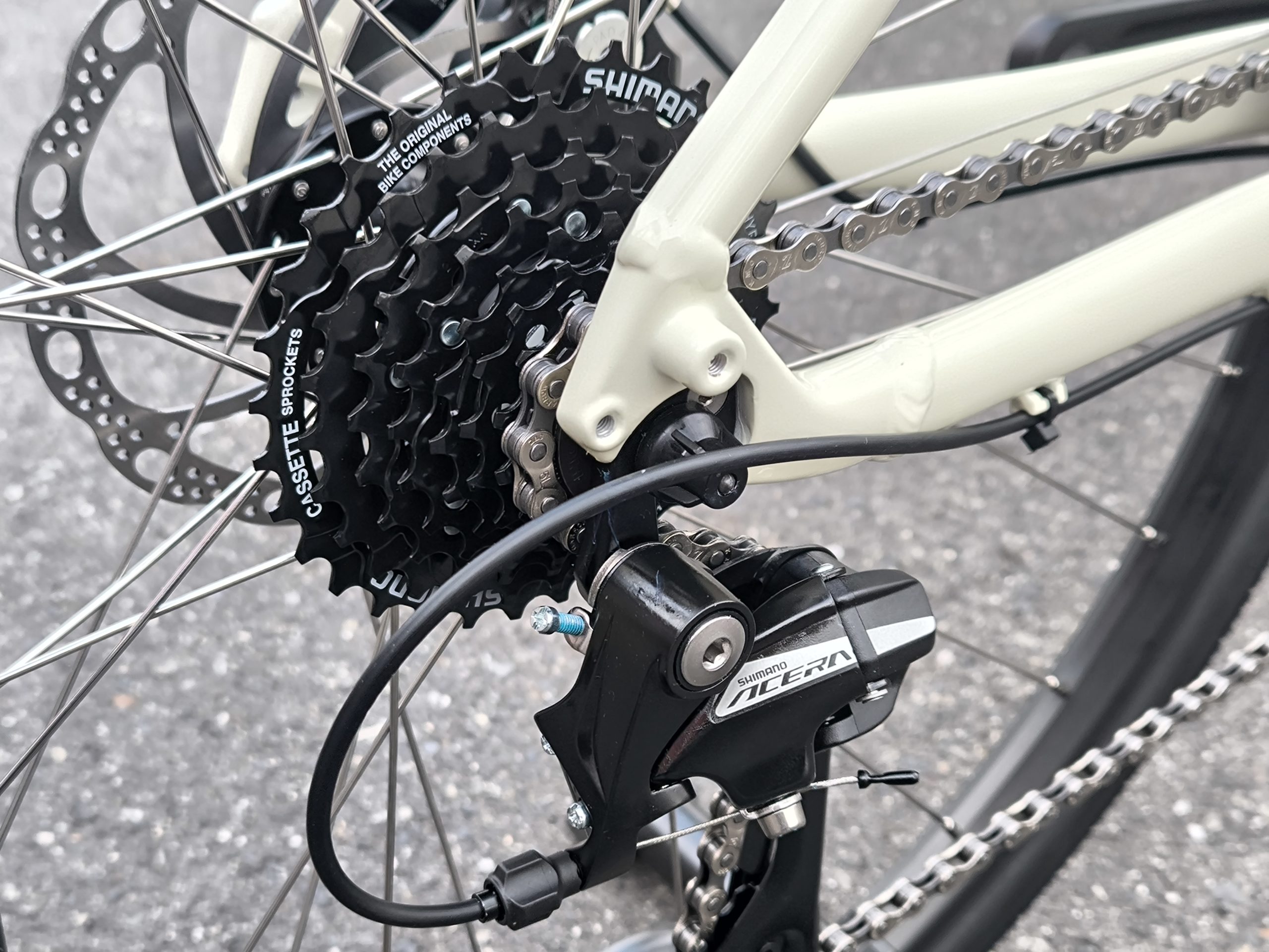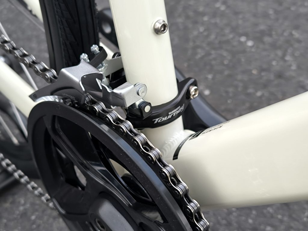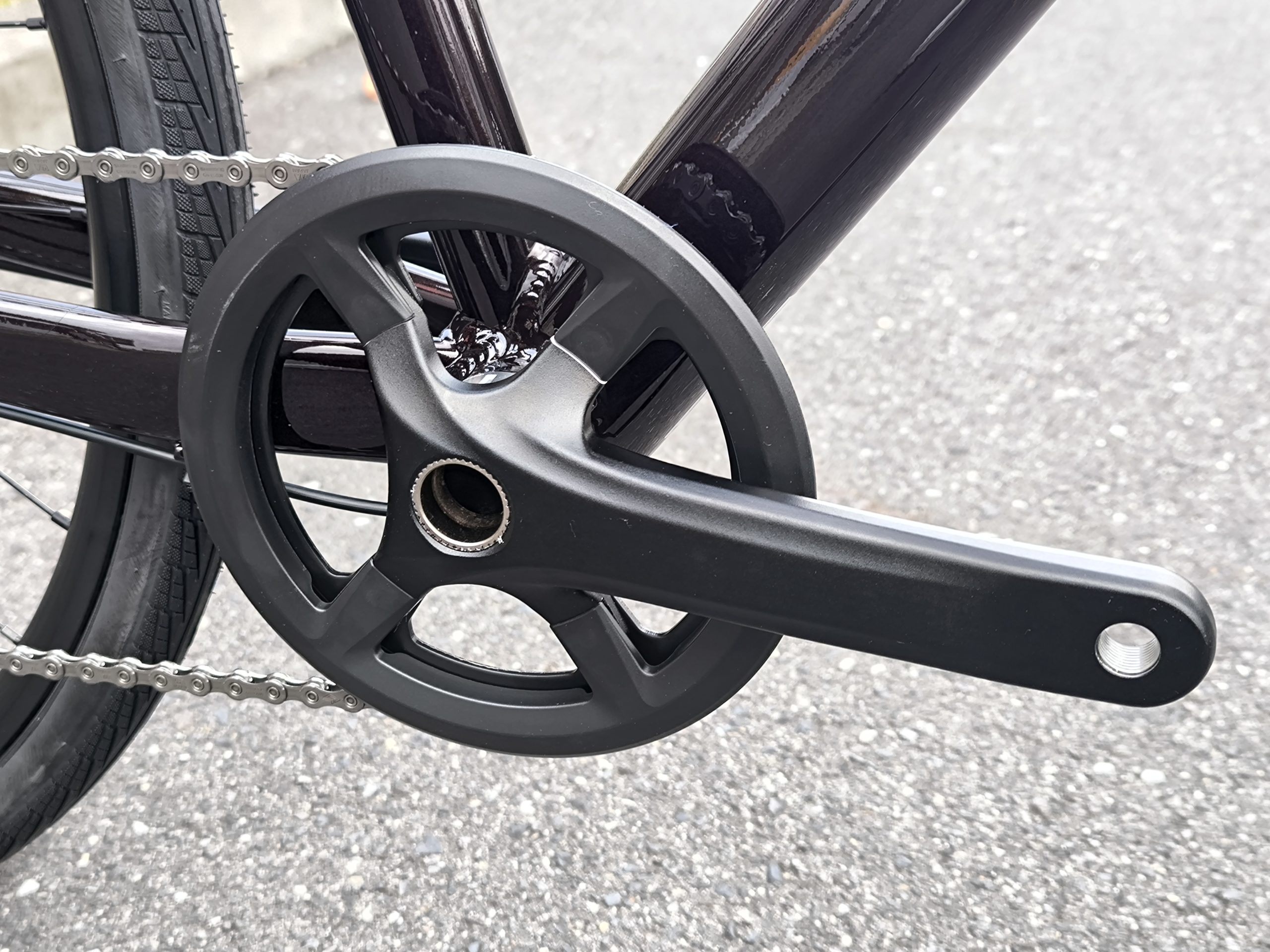 ギアが一枚になった分、坂道は大丈夫なの?という不安は当然あるかと思いますが、その点はリアのギア(スプロケット)を大きくすることでギア比を調整してあるので、キツい坂道でも難なく走破可能です。