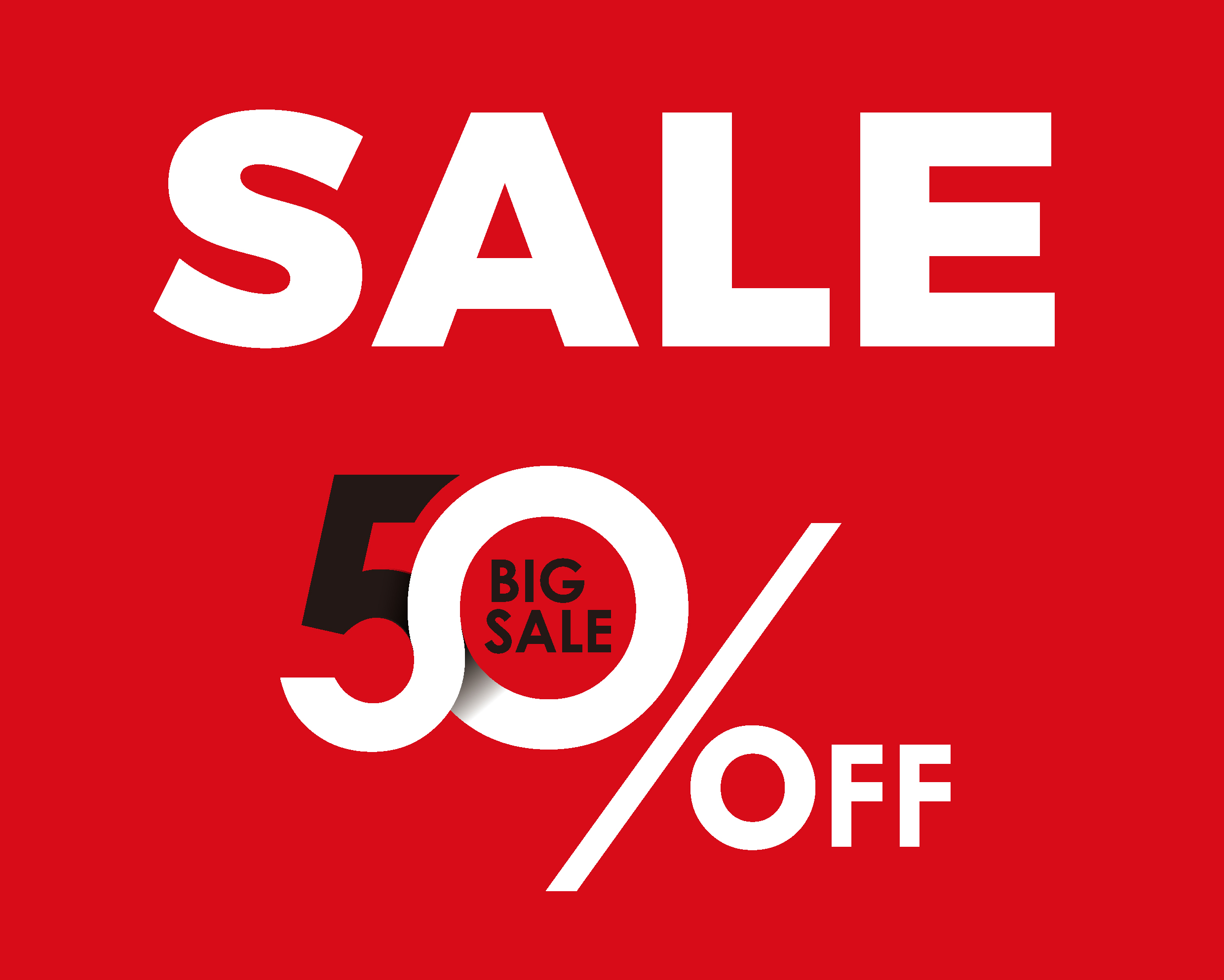 店内の冬物衣料ならすべての商品が”50%オフ”、つまり”半額”でご提供させていただきます!